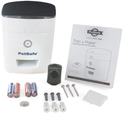 Another wall mounted dog treat dispenser that is basically innovative is the PetSafe Train and Dog Treat Dispenser. It actually comes with a handheld remote control that is so compact which makes coaching from a far very convenient. You can even manage your dog’s behavior such as jumping over visitors or begging for a meal with this wall mounted dog treat dispenser.
